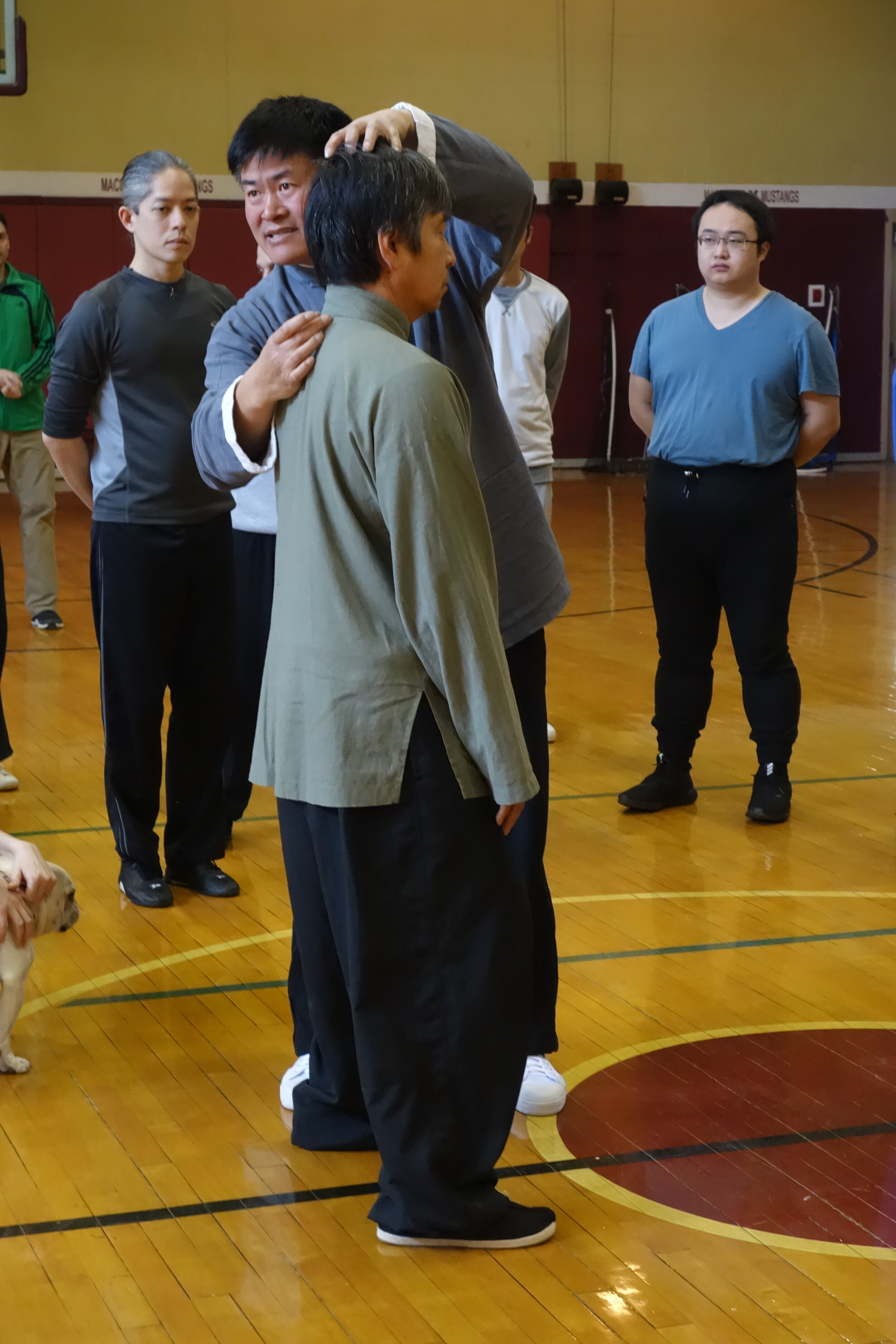 At the end of this form the body sinks. The energy drops to the dantian, and to the ground.